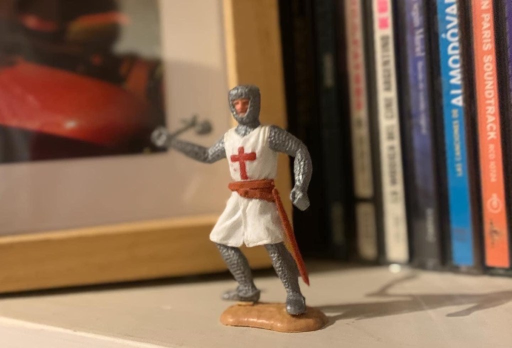 Entre todos sus juguetes tenía una especie de fortaleza y una soldaditos medievales articulados que me fascinaban. Yo tenía esos soldaditos de molde del ejército norteamericano de la segunda guerra, todos verdes, todos iguales, todos inmóviles. Había llegado a fantasear con robarle uno. Imaginaba que sólo uno alcanzaba para derrotar a mi ejército pedorro. A esos doce del patíbulo que no servían para nada. Pero mi formación cristiana protegió su propiedad privada por aquellos tiempos.